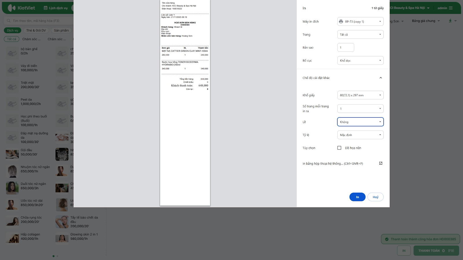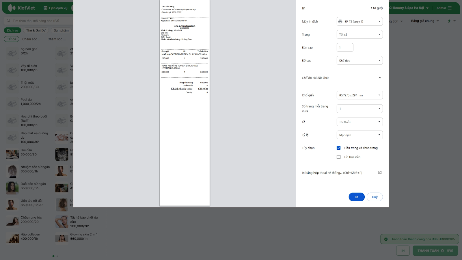 - Nhấn In (Print). Hóa đơn sẽ được in ra thành công.