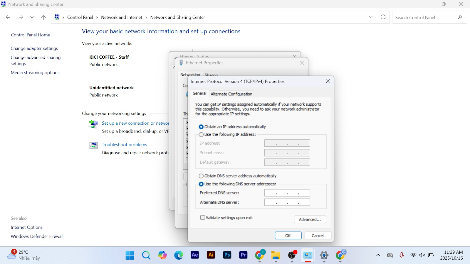 - Bước 5: Thiết lập lại IP động cho máy tính: Đổi IP máy tính về chế độ tự động để truy cập internet bình thường. Sau khi cố định IP cho máy in thành công bạn kết nối máy in vào router mạng của cửa hàng.