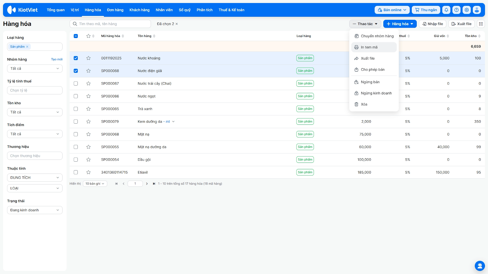 - Tích chọn những sản phẩm bạn muốn in tem → Nhấn nút In tem mã.