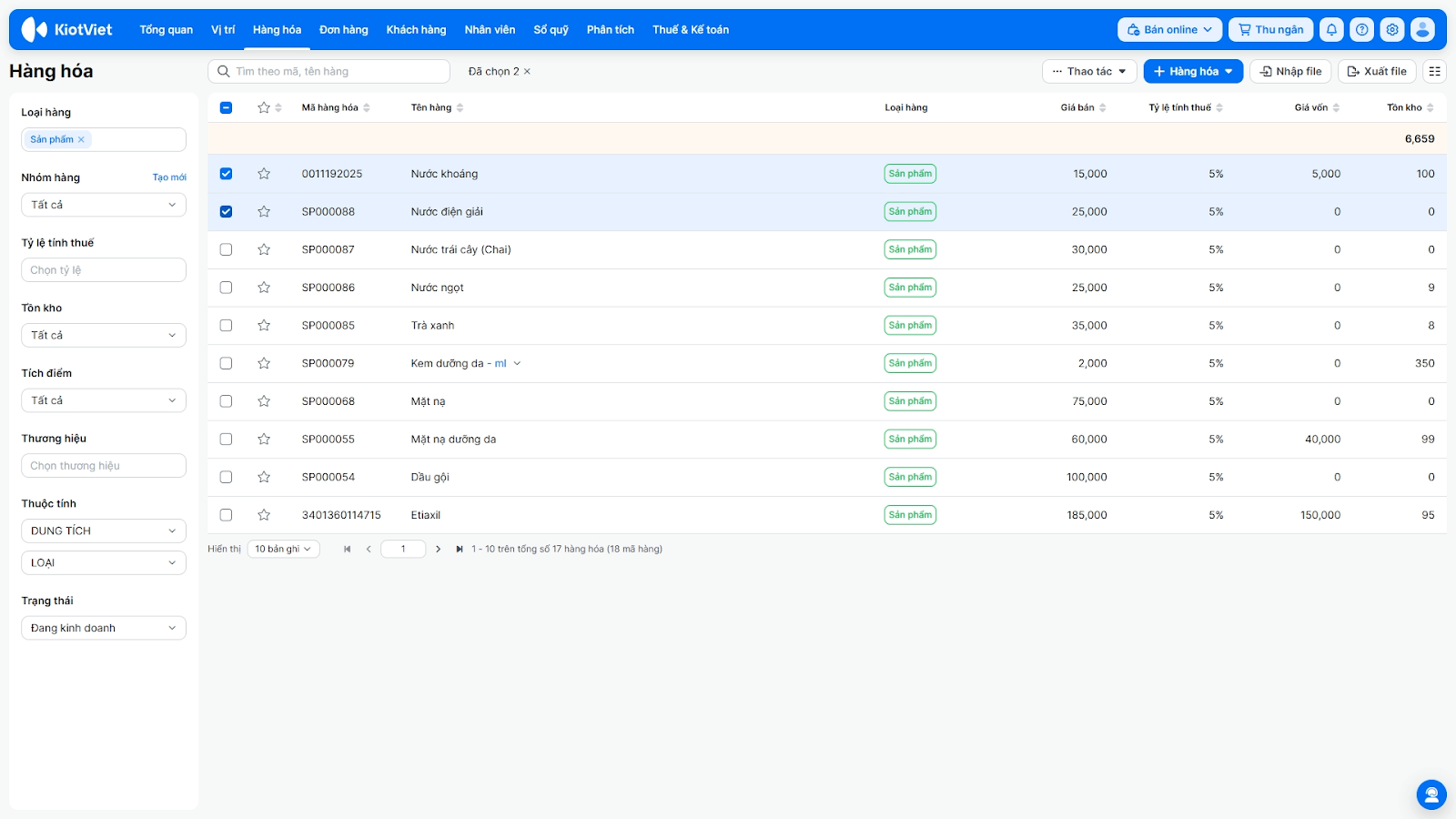 - Từ menu Hàng hóa, chọn Danh sách hàng hóa.