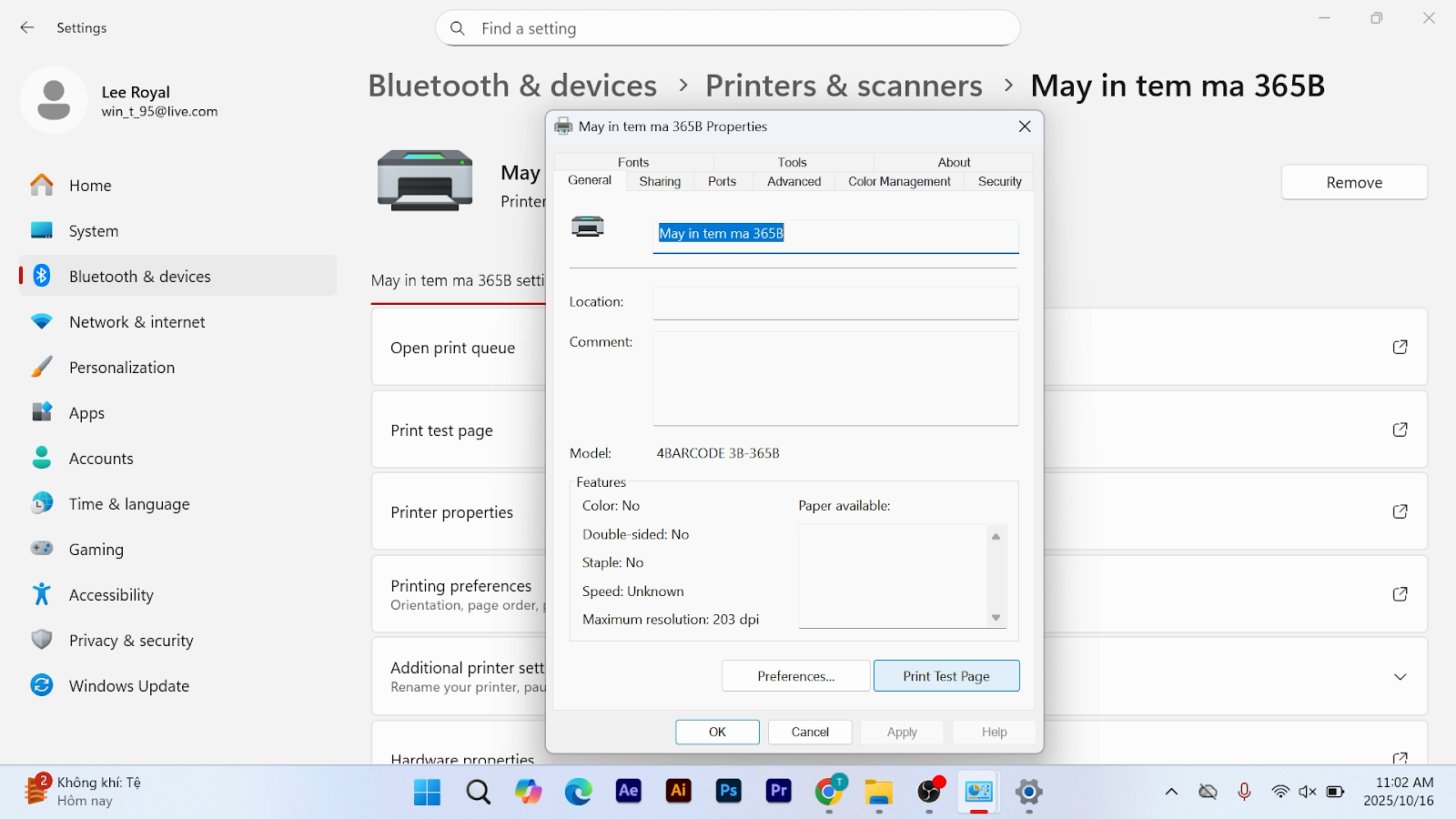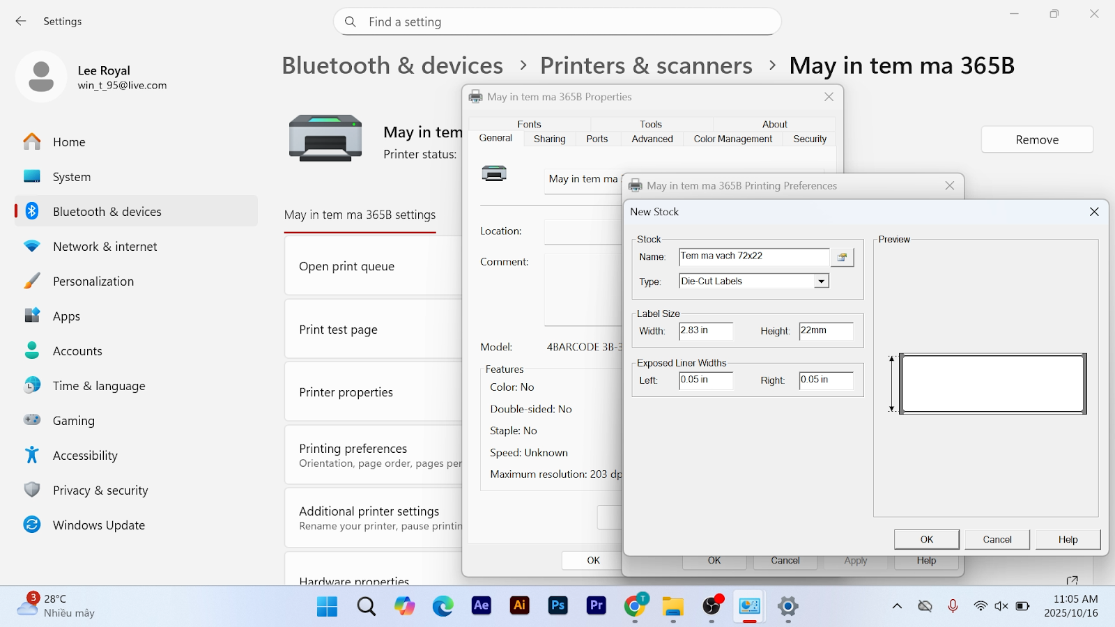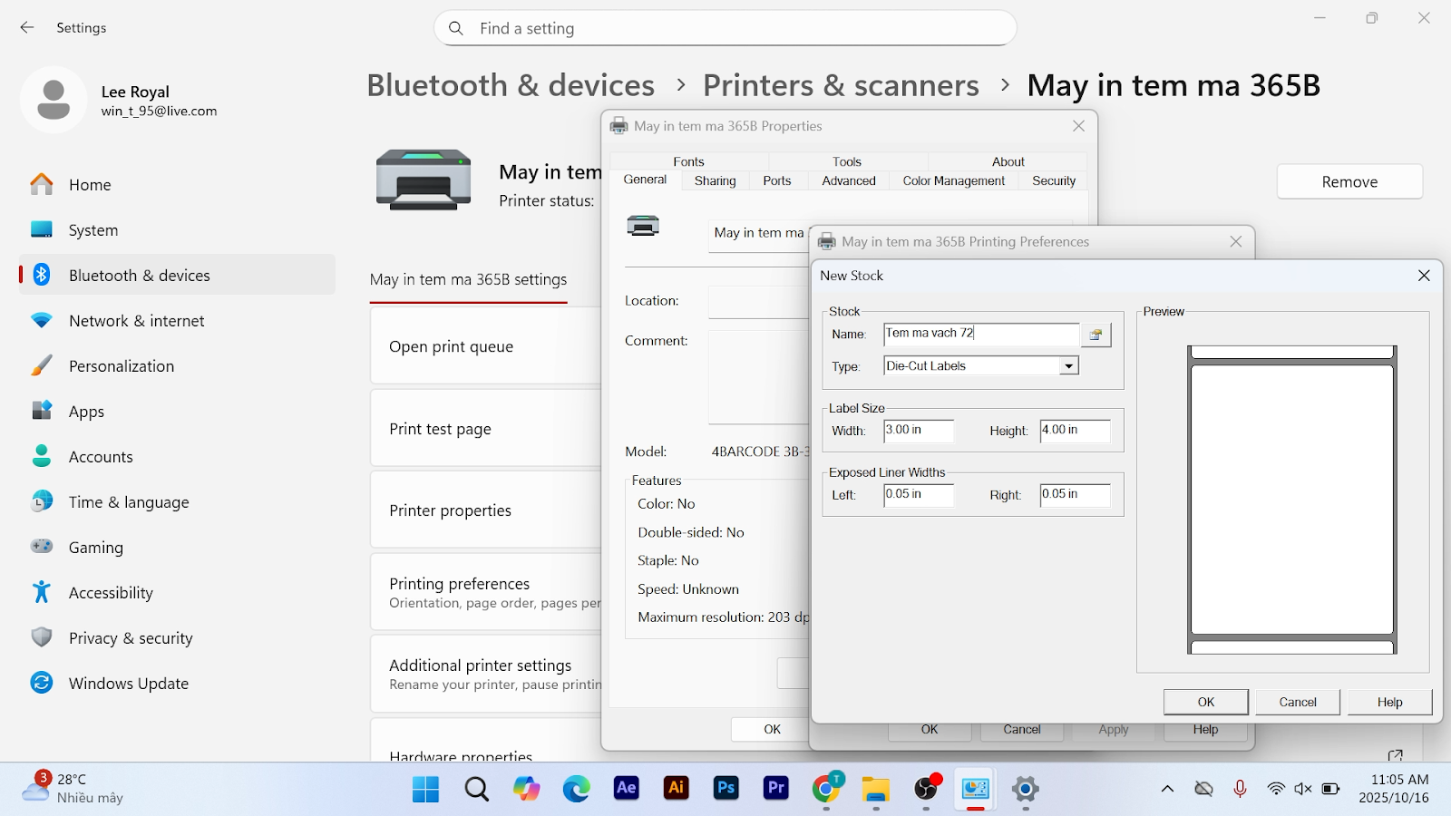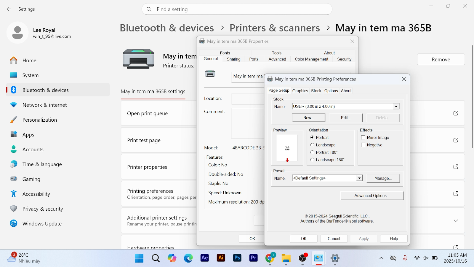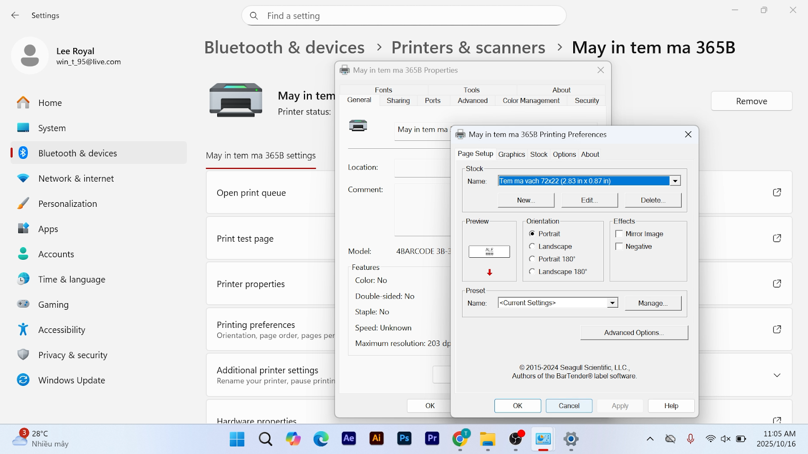 - Trong cửa sổ xem trước, đảm bảo bạn đã chọn đúng Máy in tem mã và khổ giấy chính xác.