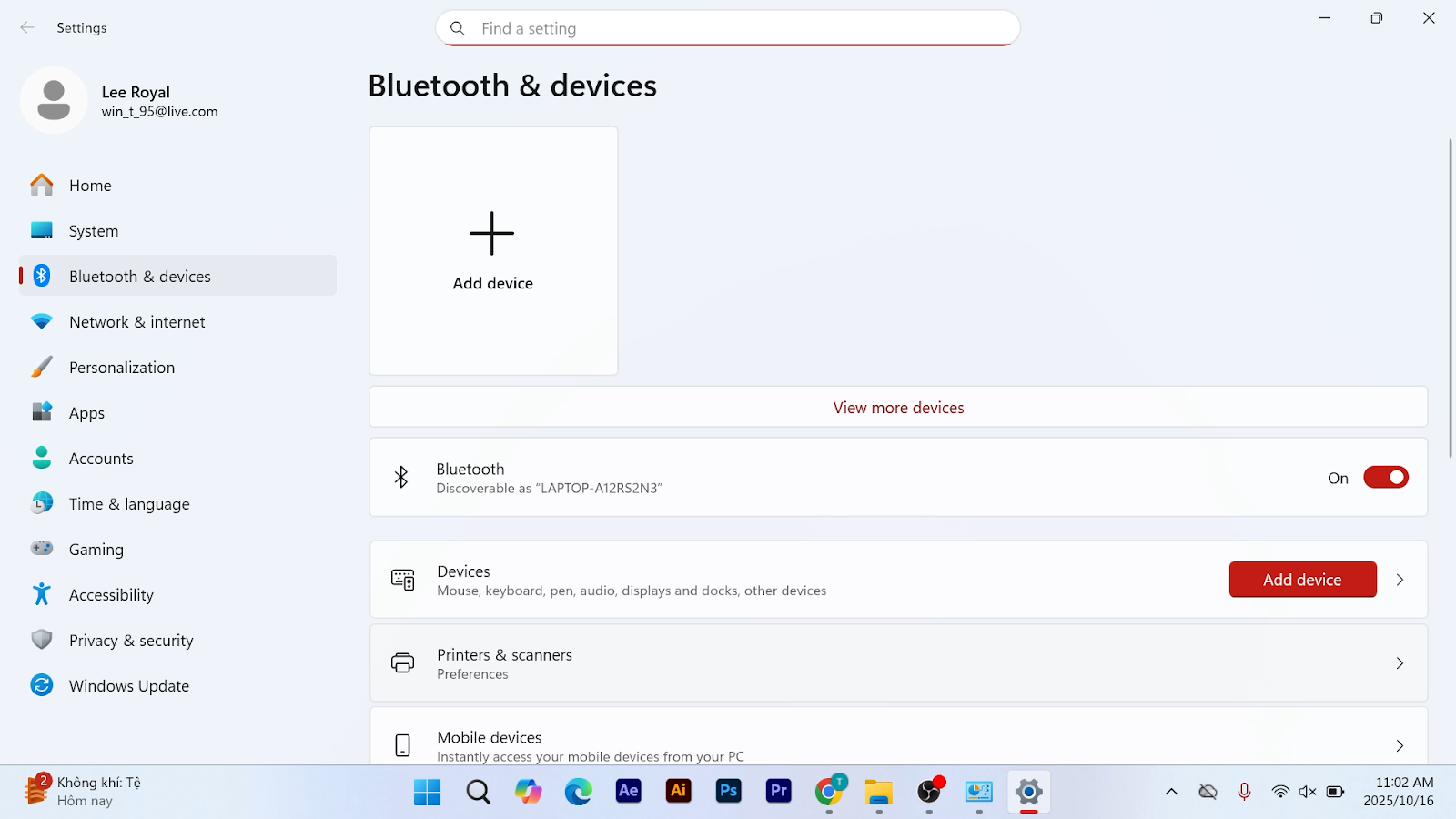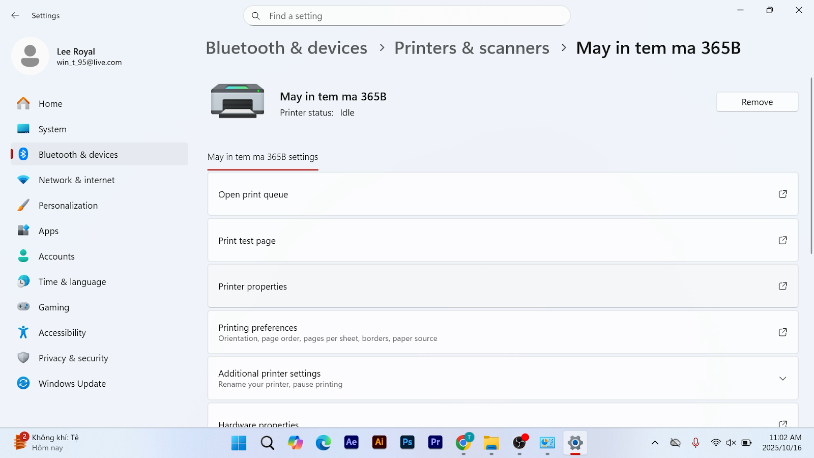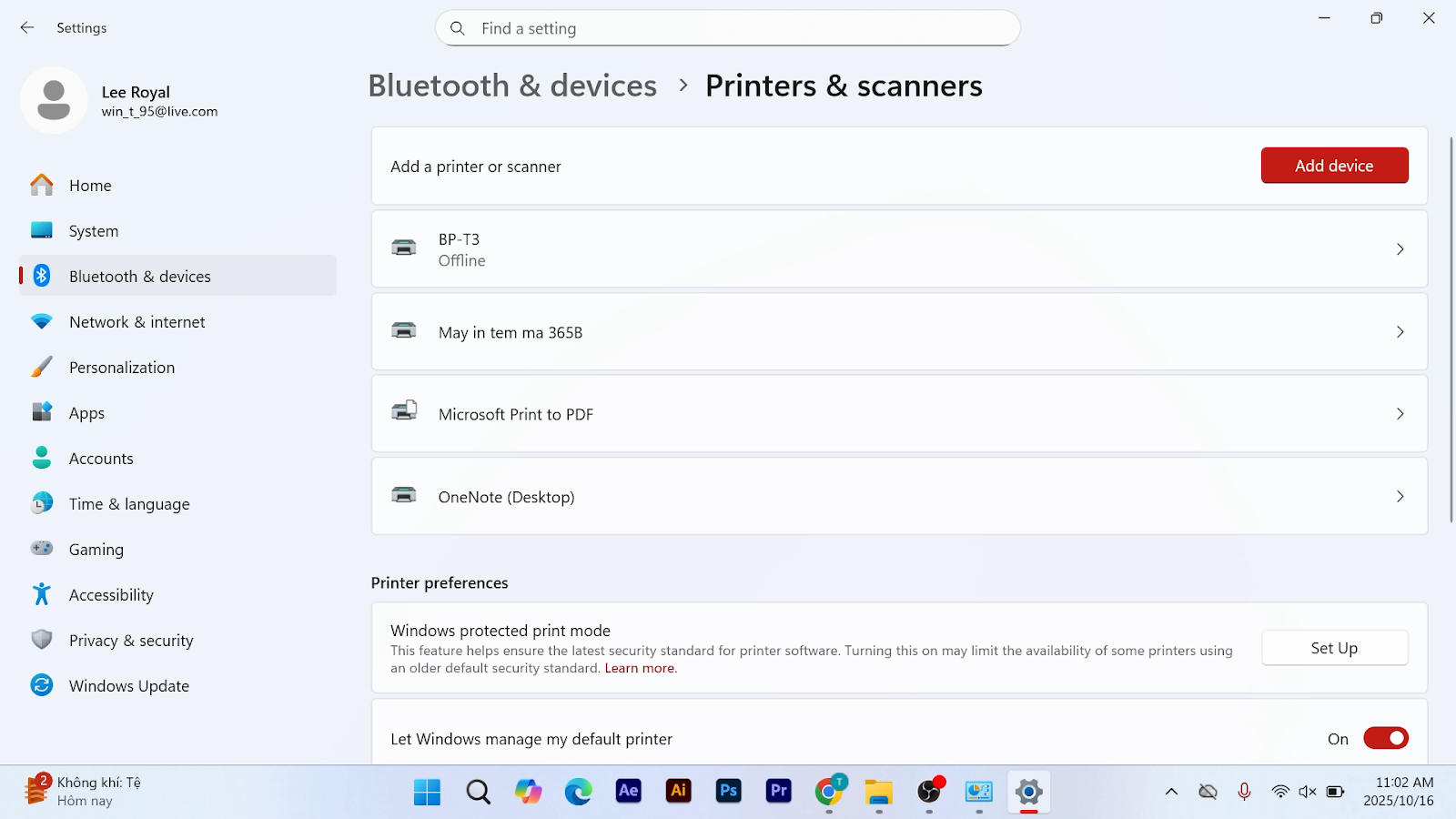 - Bật Thiết lập máy in → Nhấn nút Thêm máy in..