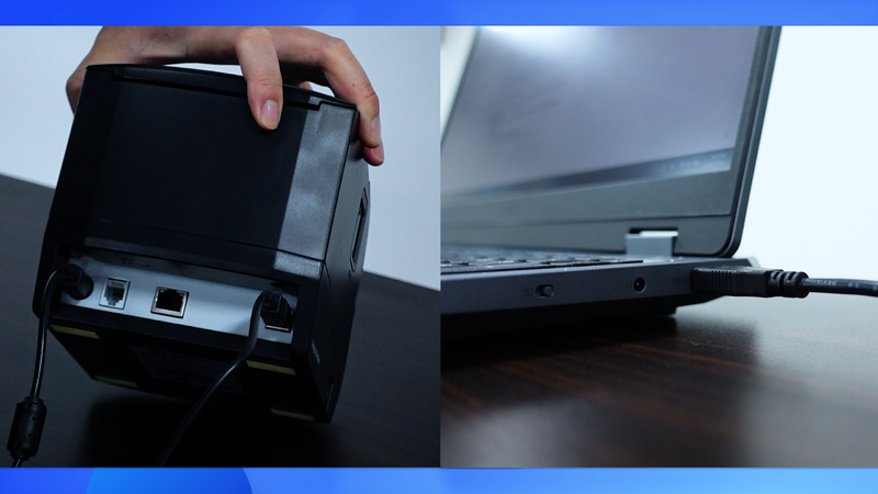- Kết nối máy in với máy tính qua dây cáp USB.