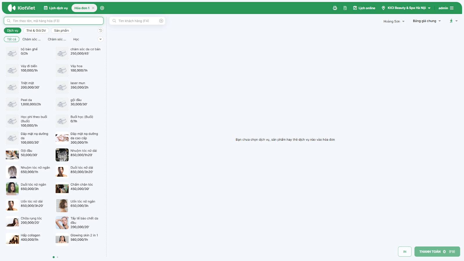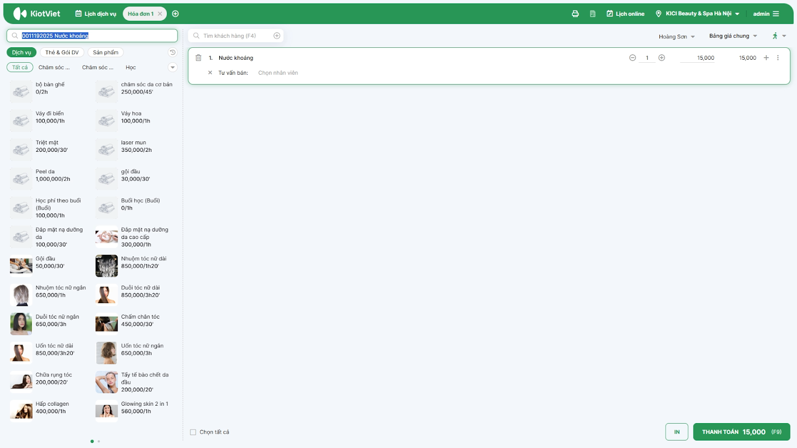 - Tình huống: Khi nhân viên/kỹ thuật viên cần thêm nhanh cá sản phẩm (dầu gội, mỹ phẩm) hoặc quét thẻ liệu trình của khách khi đang tư vấn.