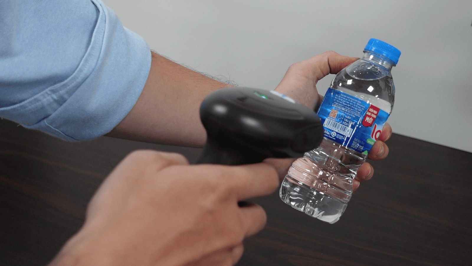- Hướng tia laser của máy quét vào mã vạch trên sản phẩm.