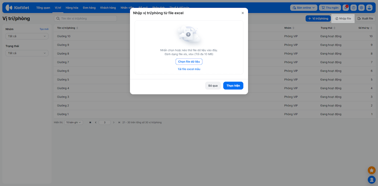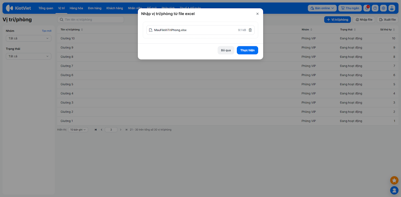 - Hệ thống sẽ tự động tải xuống một file Excel chứa toàn bộ danh sách các vị trí/phòng hiện có tại cửa hàng.