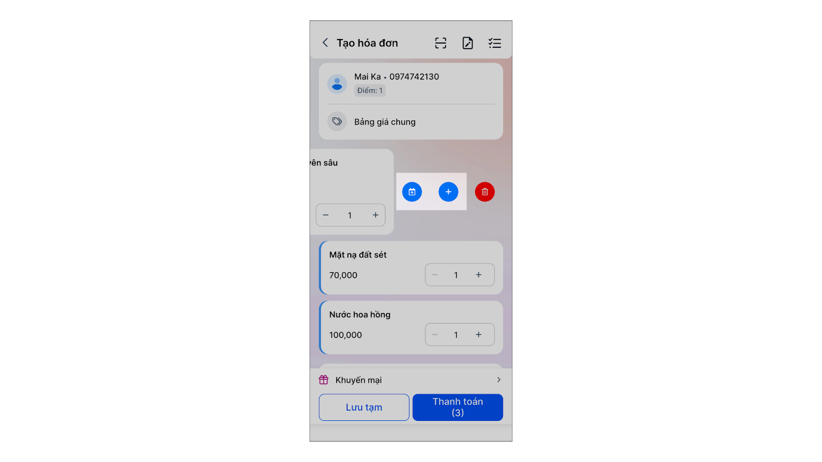 - Tình huống: Nhân viên tư vấn tại ghế và tạo đơn ngay trên điện thoại.