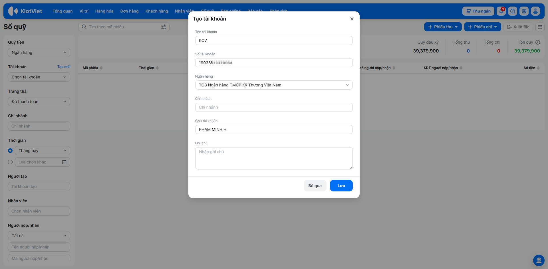 - 2. Thêm tài khoản Techcombank vào KiotViet