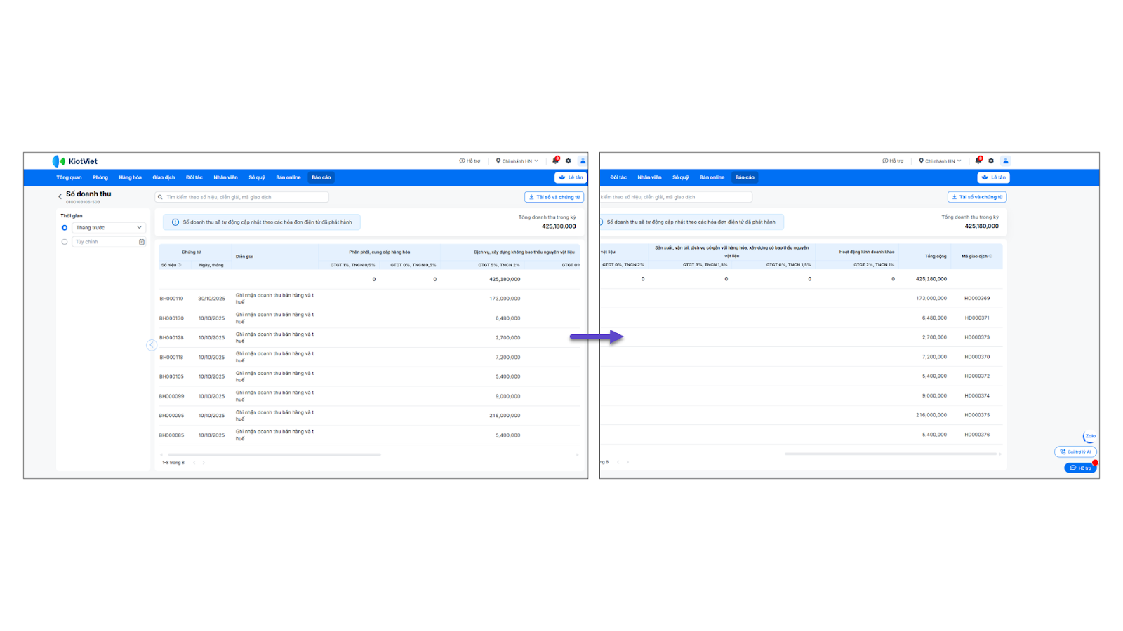 KiotViet hỗ trợ quản lý Sổ doanh thu theo cơ chế như sau: