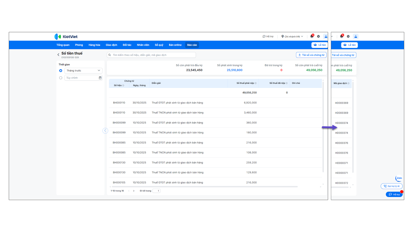 KiotViet hỗ trợ quản lý Sổ tiền thuế theo cơ chế như sau: