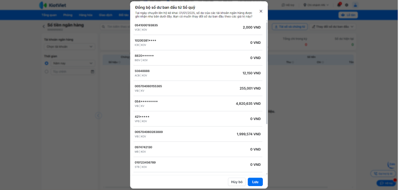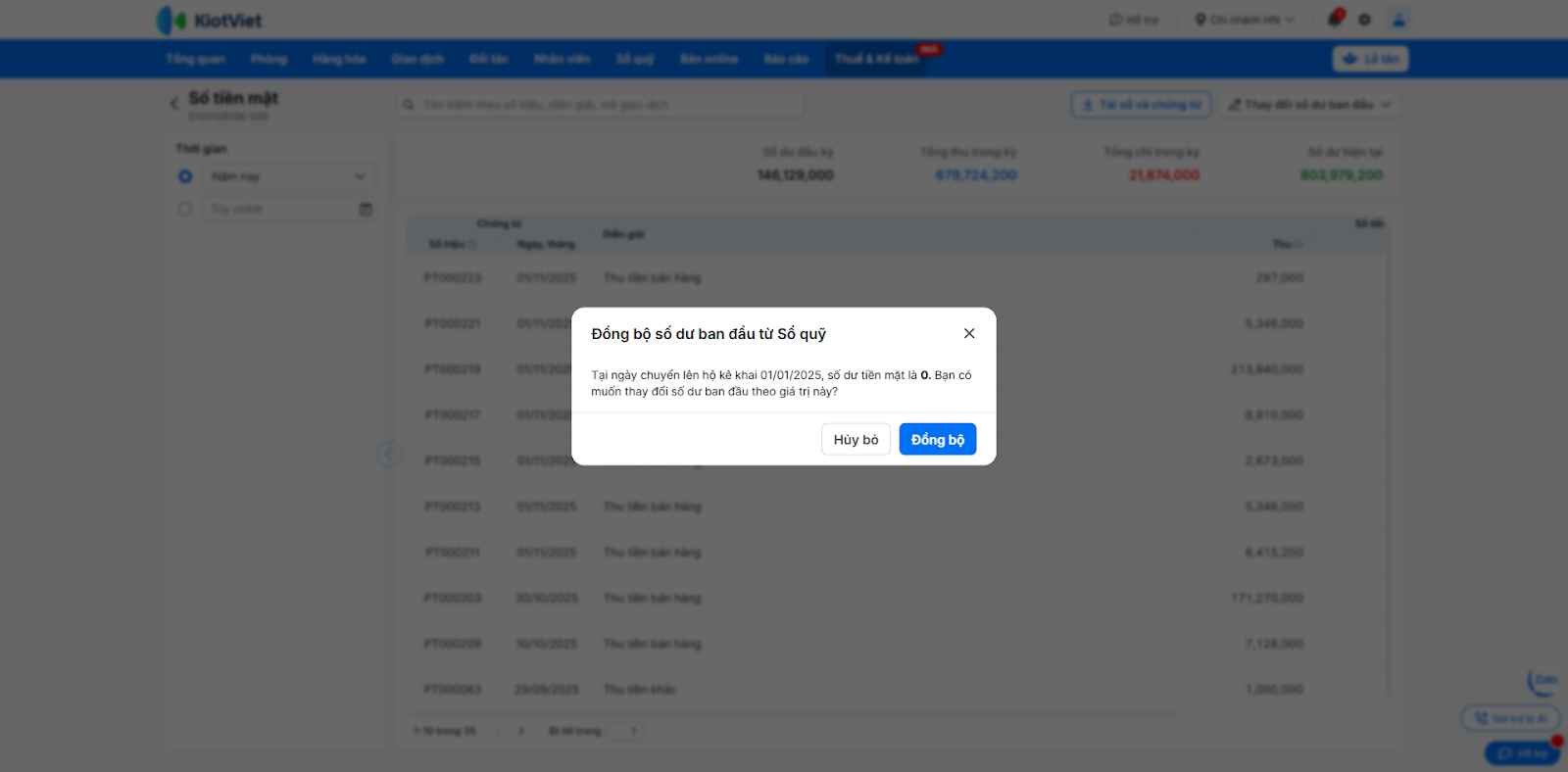- Bạn nhấn Đồng bộ để thay đổi số dư ban đầu theo giá trị này.