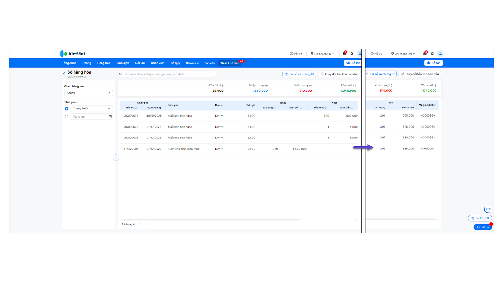 KiotViet hỗ trợ quản lý Sổ hàng hóa theo cơ chế như sau:
