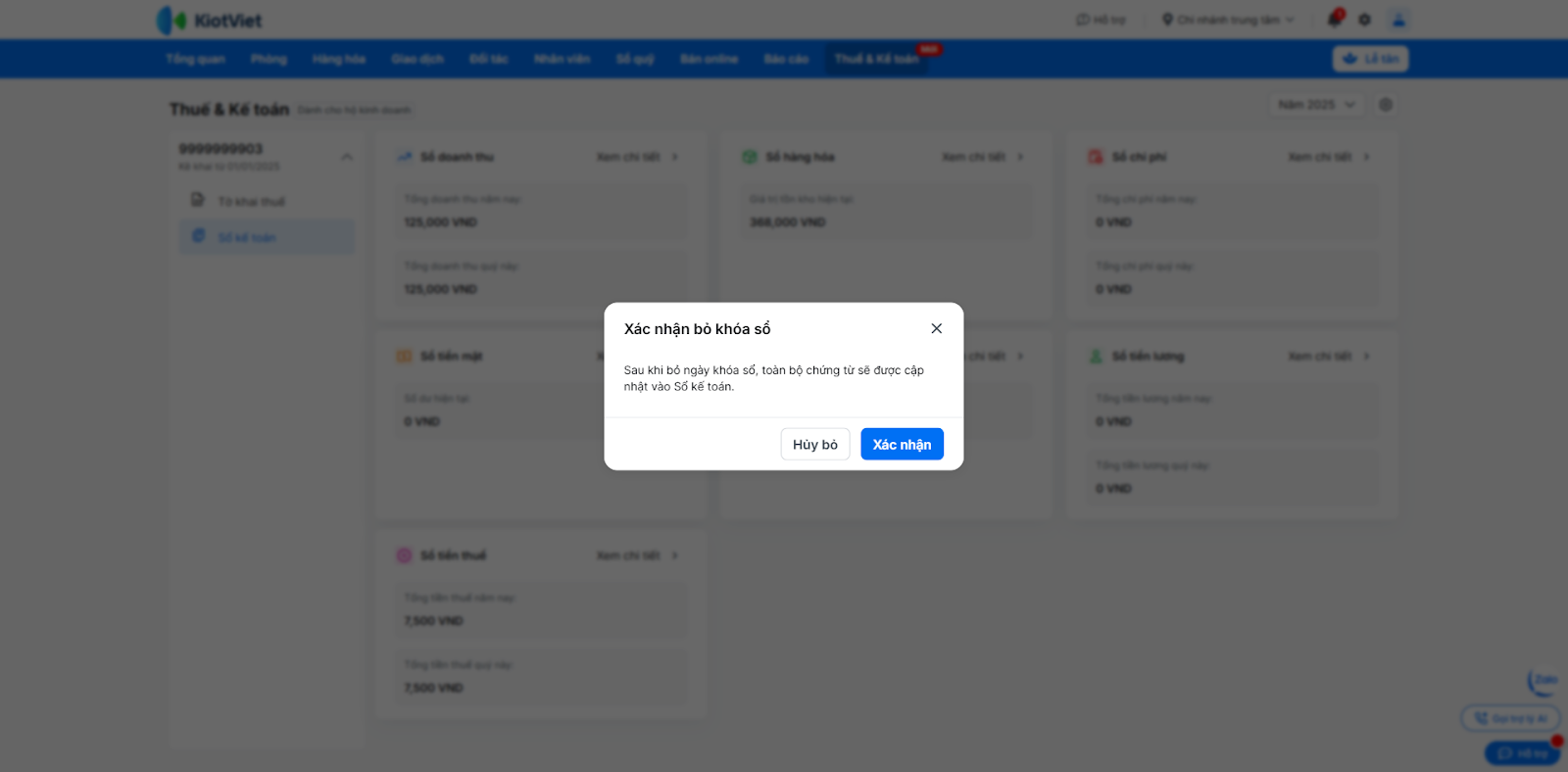 (2) Chọn Xác nhận để chắc chắn bỏ khóa sổ.