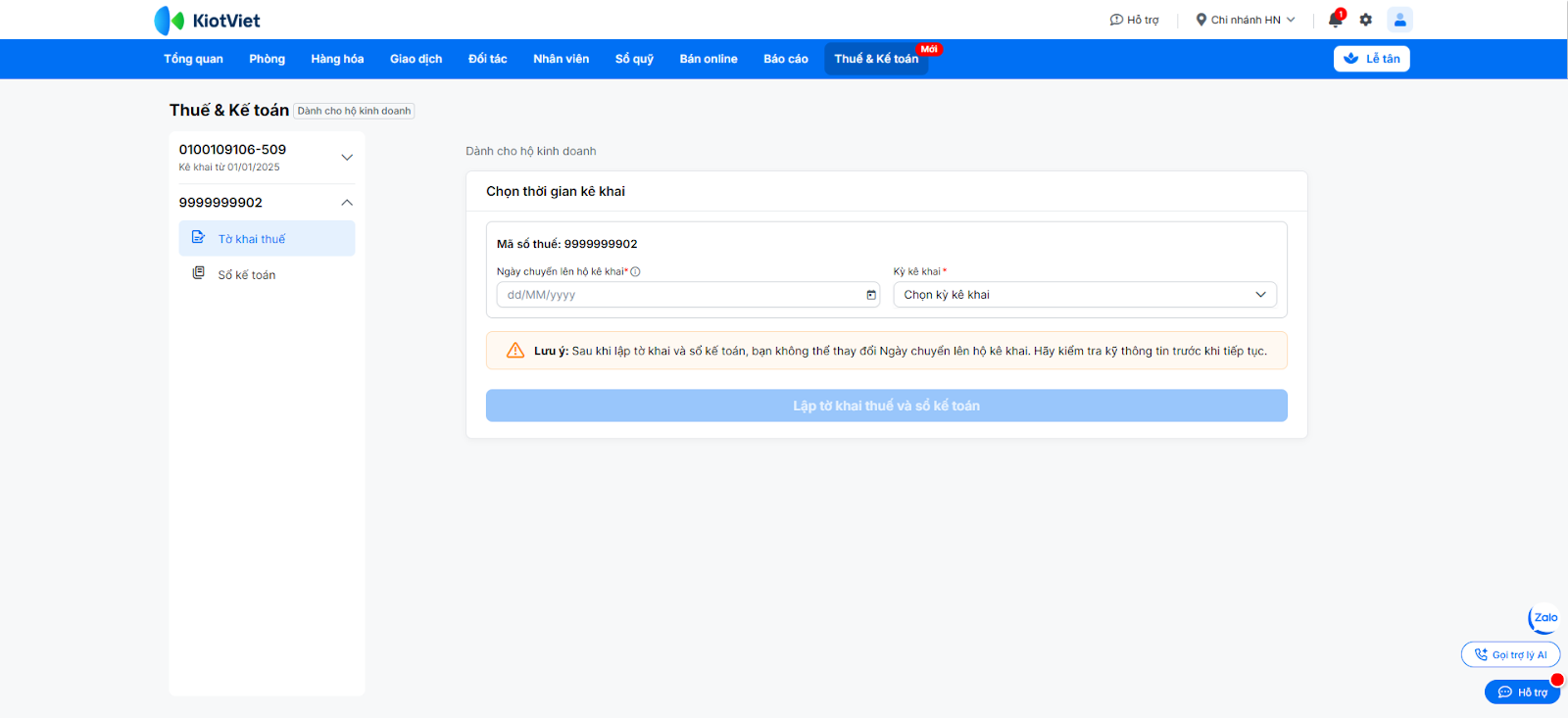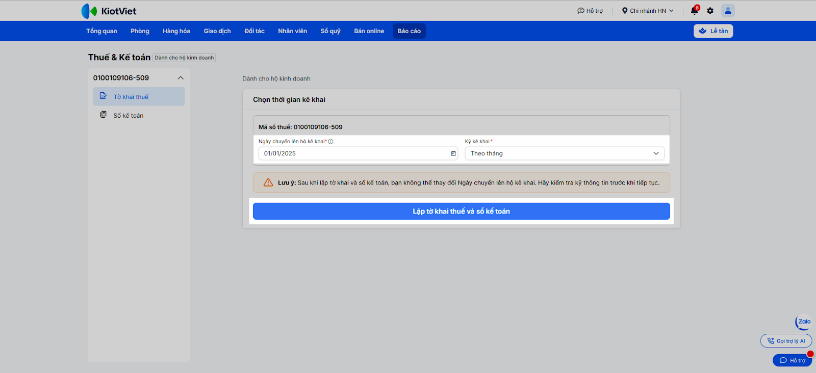 - Nếu bạn đã kê khai từ trước 01/01/2025, hệ thống sẽ chỉ hỗ trợ dữ liệu và lập sổ từ ngày 01/01/2025.