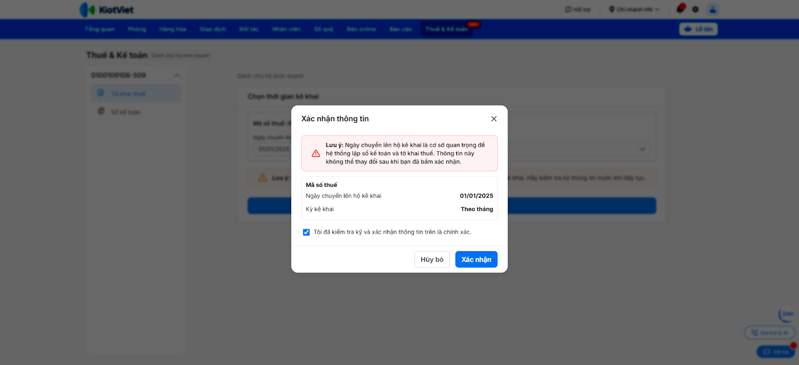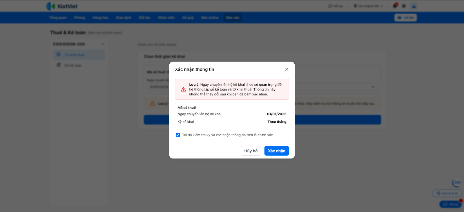 (3) Nhấn Xác nhận để hệ thống tổng hợp số liệu.
