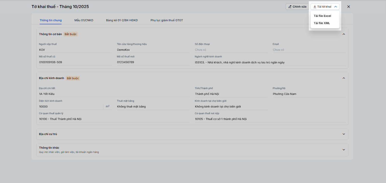 - Chủ động hoàn thành nghĩa vụ thuế: Bạn có thể dễ dàng xem trước, điều chỉnh và kết xuất tờ khai dưới dạng file XML (nộp trực tuyến) hoặc Excel (nộp trực tiếp), đảm bảo hoàn thành nghĩa vụ thuế đúng hạn.