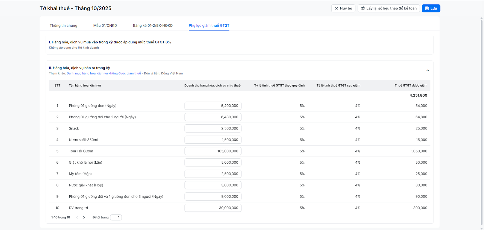 - Bạn cần điều chỉnh lại số liệu hoặc xóa hàng hóa, vật liệu không cần hiển thị trên Phụ lục giảm thuế GTGT