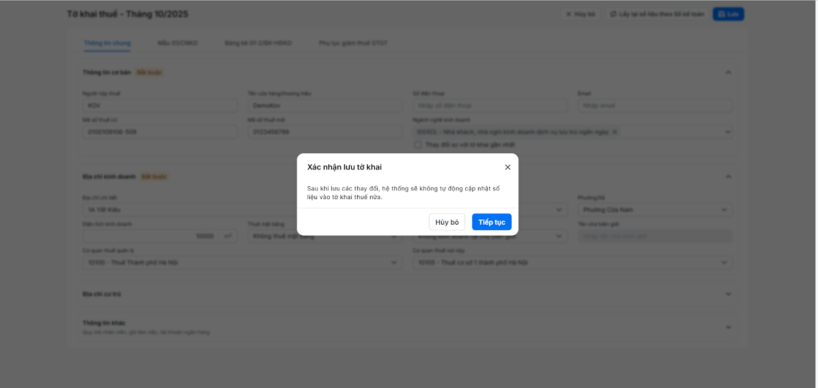 Lưu ý: Một khi bạn đã nhấn Lưu sau khi chỉnh sửa, tờ khai sẽ không được tự động cập nhật nếu có các giao dịch được thêm mới, chỉnh sửa trong kỳ này.