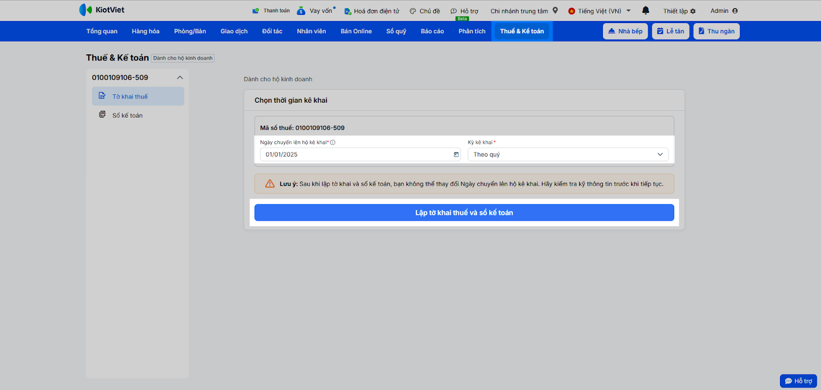 - Nếu bạn đã kê khai từ trước 01/01/2025, hệ thống sẽ chỉ hỗ trợ dữ liệu và lập sổ từ ngày 01/01/2025.