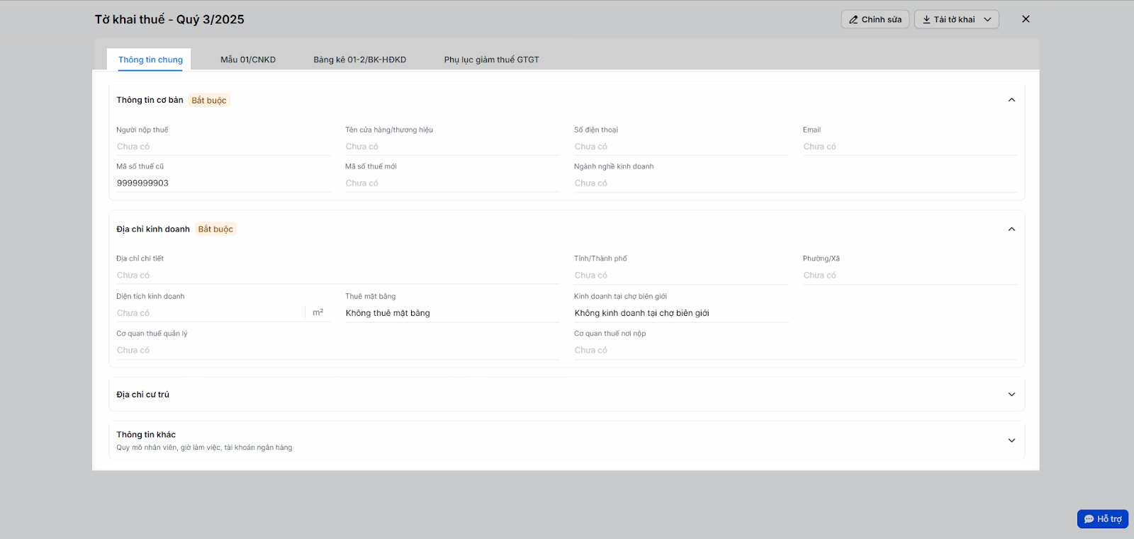 - Để tuân thủ quy định, bạn bắt buộc phải hoàn thiện thông tin pháp lý của hộ kinh doanh trước khi tải tờ khai.