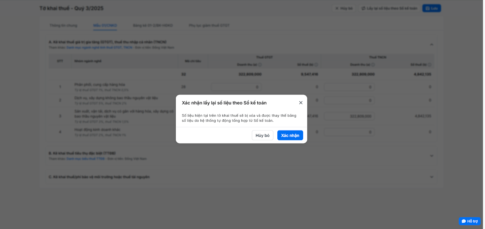 (3) Nhấn Xác nhận để hệ thống tổng hợp số liệu.