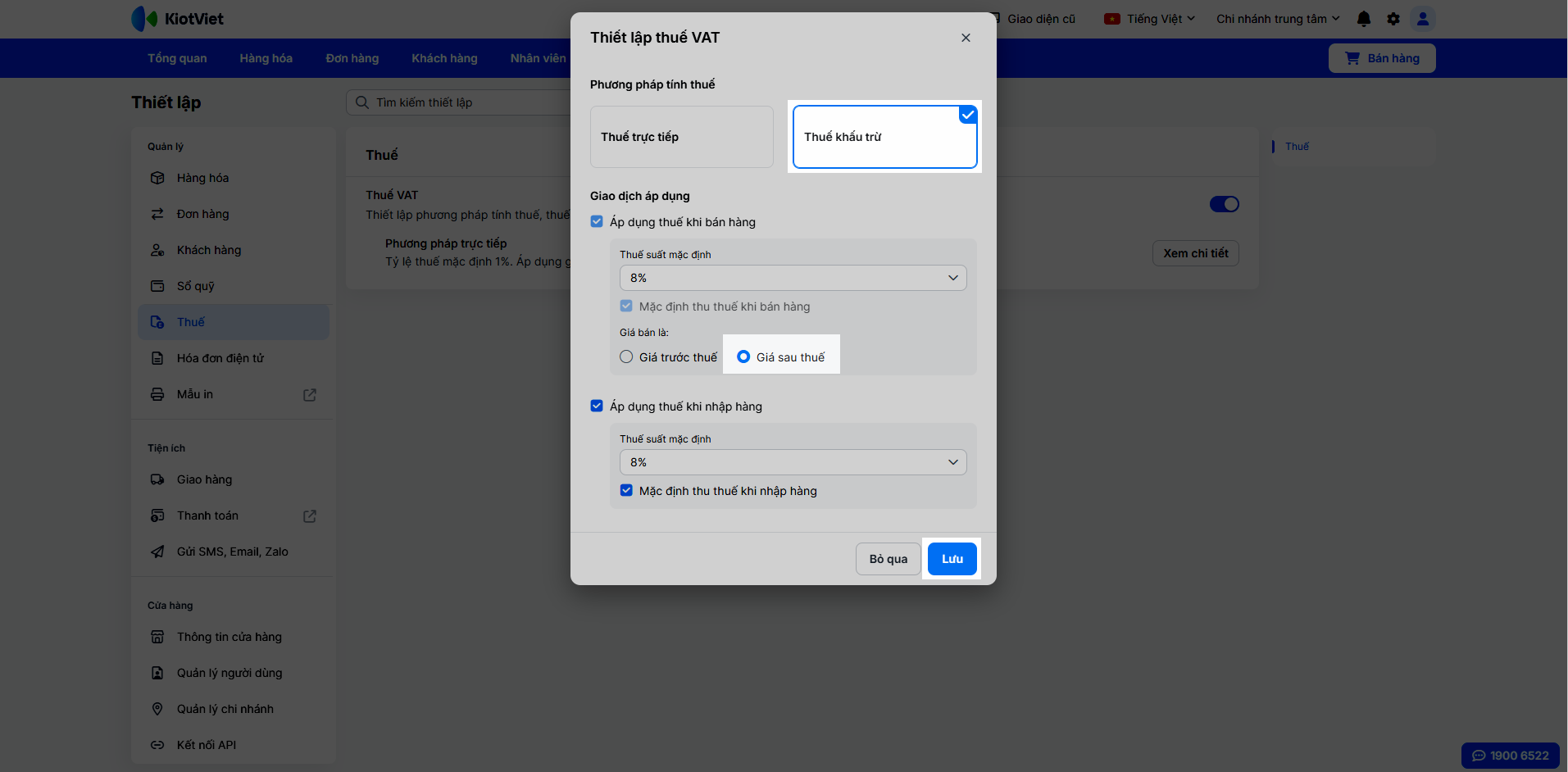 - Vận hành linh hoạt: Dễ dàng chuyển đổi giữa hai hình thức hiển thị giá (trước thuế và sau thuế) cho phù hợp với mô hình kinh doanh của bạn.