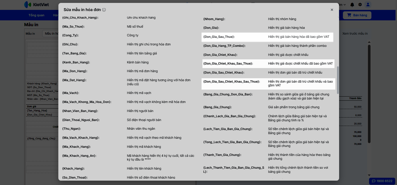 - Lưu ý: Nếu không cập nhật, mẫu in sẽ tiếp tục hiển thị giá trước thuế, có thể gây khó hiểu cho khách hàng.