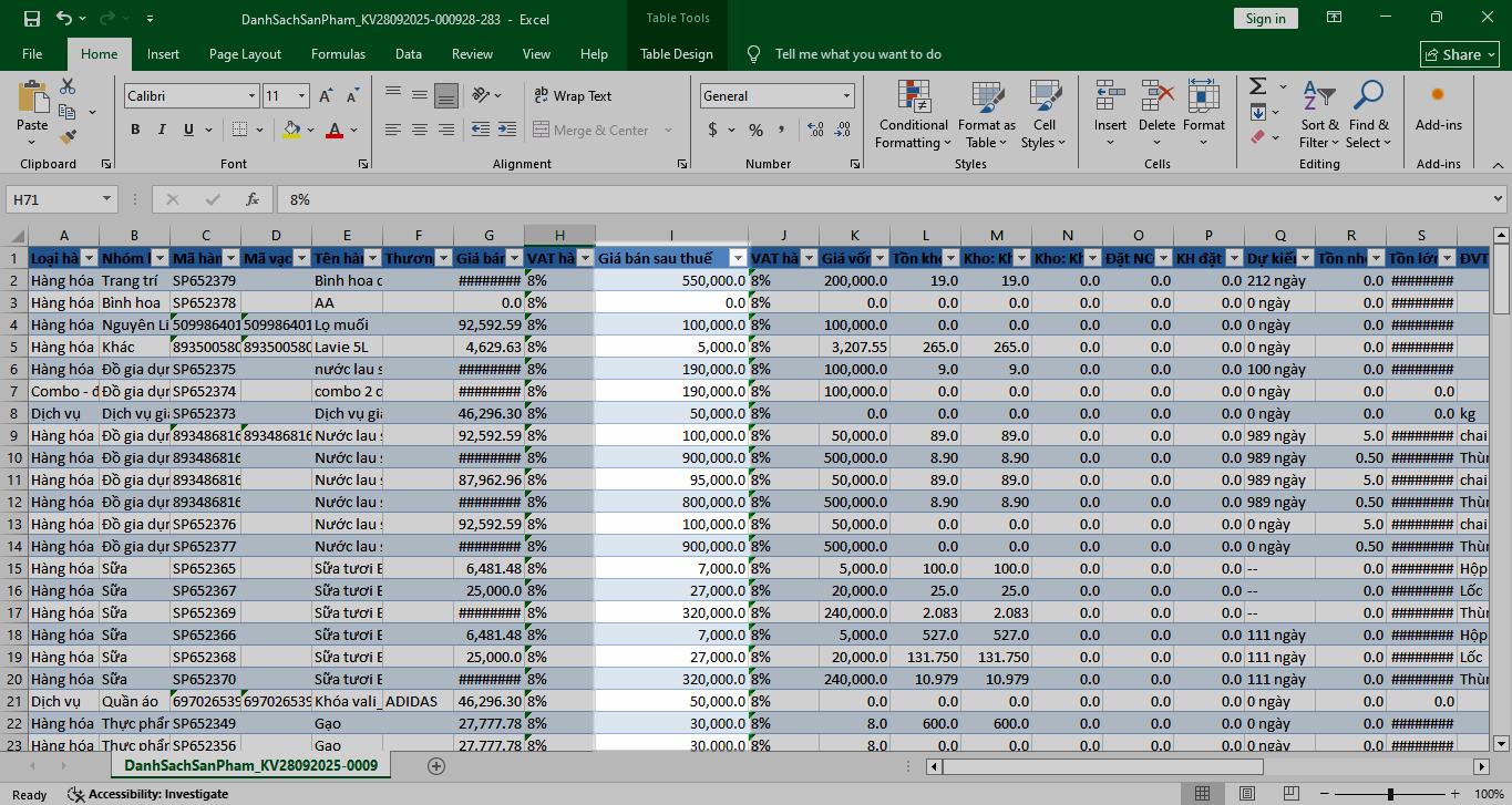 - Tình huống: Bạn cần cập nhật giá bán hàng loạt cho hàng trăm sản phẩm bằng file Excel.