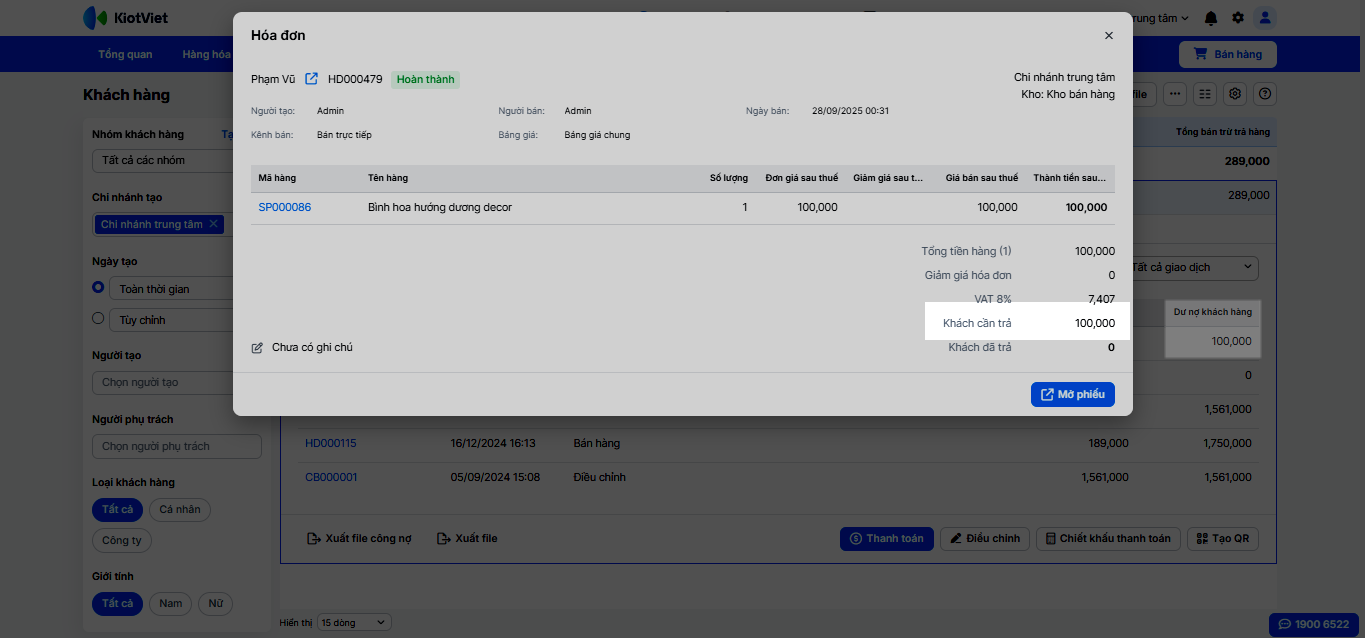 - Tình huống: Bạn cần xem báo cáo doanh thu cuối ngày và kiểm tra công nợ của một khách hàng thân thiết.