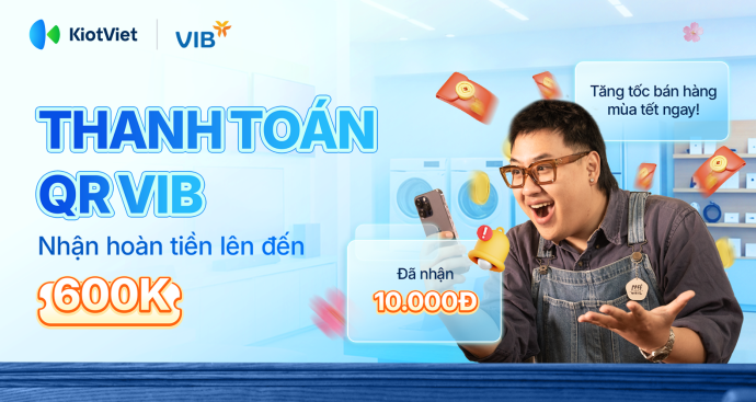Nhà nghỉ, Khách sạn, Homestay, Camping...Hỗ trợ các chủ shop trong mùa cao điểm, KiotViet phối hợp cùng VIB triển khai chương trình ưu đãi dành cho người dùng Digi Invoice với cơ hội hoàn tiền lên đến 600.000 đồng.