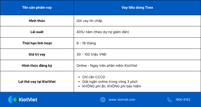 Đăng ký vay vốn TNEX trên KiotViet